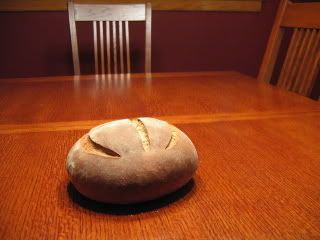 It turned out suprisingly well. It was pretty tasty stuff, and though it came out at 9:30 at night, I just had to share it with somebody. It's no fun experiencing a moment like this alone. I called up a guy at work, and brought the bread over to him and his wife and his mom, who lives with them. We all tried it, and it was declared a success.